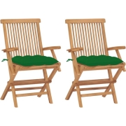 The Living Store Houten Tuinstoelen - Set van 2 - Teakhout - Groen Kussen