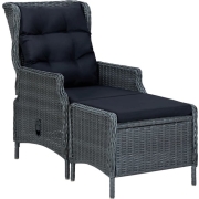 The Living Store Verstelbare Tuinstoel - Donkergrijs - PE-rattan - 57 x 88 x 100 cm - Met ligfunctie
