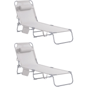 SoBuy - Set van 2 Verstelbare Buiten Zonnebanken voor Camping en Tuin - Beige