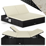 Loungebank + Ligbed 2in1 Crème/Zwart Polyrotan