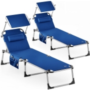 Ligbed Malta 2 stuks Blauw 210x61x35cm Aluminium met Zonnescherm