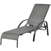 Buiten ligbed met verstelbare rugleuning. Creëer een ontspannen buitenruimte met deze elegante ligstoel, een perfecte aanvulling voor elke tuin, terras of balkon. Hij is gemaakt van duurzaam…