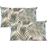 Sierkussen voor binnen en buiten - 2x - palmen print - groen/wit - 30 x 50 cm - tuinkussen -