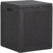 Tuin kussen opbergbox met een rotan relief in de kleur antraciet. Deze opbergbox heeft een ingebouwde hangslothouder, is gemaakt van kunststof en is daarom waterdicht en weervast. Ideaal om te…