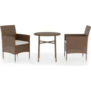 vidaXL 3-delige Tuinbarset met kussens poly rattan zwart