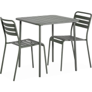 Voordelen van het product  Tuintafel met latten en afgeronde hoeken  Gemakkelijke afvoer van regenwater  Stalen montage  Roestwerende behandeling   Deze 2-zits…