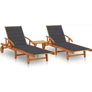 vidaXL Ligstoelen 2 st met tafel en kussens massief acaciahout