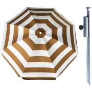Parasol met metalen grondharing - goud/wit gestreept - polyester - Dia 140 cm - verstelbaar -