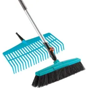 Display combisysteem gazonhark + straatbezem. Gazonhark: voor het bijeenharken van bladeren, grasresten en ander tuinafval. Van licht maar hoogwaardig kunststof, werkbreedte 43 cm. 22 elastische…