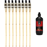 8x stuks Bamboe fakkels safe 60 cm inclusief 2 liter lampenolie/fakkelolie. De tuinfakkel heeft een zwarte navulbare oliehouder. De fakkel is aan de onderzijde voorzien van een punt waardoor u de…