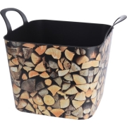Haardblokken/houtblokken flexibele opberg emmer van 53 x 40 x 38 cm - Zwart/hout print
