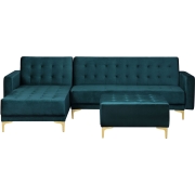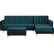 Beliani-ABERDEEN-Hoekslaapbank ottomaan-Blauwgroen-Links -Fluweel
