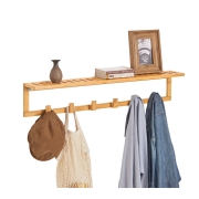 SoBuy FHK06-N Kapstok met Wandplank - 6 Haken - 90x12,5x16,5 cm - Bamboe