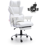 VEVOR Bureaustoel PU-leer Wit Directiestoel met voetensteun, Bureau Draaistoel Hoogte Verstelbaar 0-80 mm, Draagvermogen 181,43 kg, Directiestoel Bureaustoel 860 x 610 mm Rugleuning Draaistoel