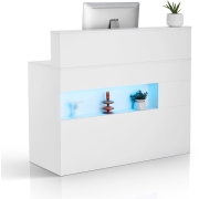 VEVOR Receptiebalie Rechthoekige Tafel, Receptiebalie Verkoopbalie Kassa met LED-verlichting, 2 Laden en Stopcontacten, voor Kassier Schoonheidssalon Kantoor, Wit