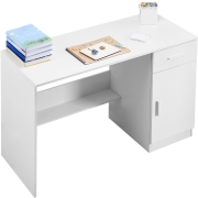 VEVOR Klein bureau met lade, schrijftafel voor de slaapkamer, eenvoudige houten studeertafel om te tekenen en lezen, rechthoekige MDF-werktafel met verstelbare plank voor op kantoor, wit