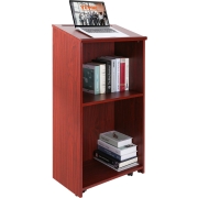 VEVOR Podiumstandaard, 47-inch hostessstandaard met 4 wielen, houten podium met opbergplanken en schuin bureaublad, lessenaars en podia voor kerk, kantoor, school, thuis, bruin