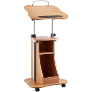 VEVOR Podiumstandaard Houten Lessenaar (1,1 m), Draagbare Laptoptafel met Vergrendelbare Wielen & Breed Leesoppervlak & Open Opbergruimte, Hoogte Verstelbaar voor Lezingen/Presentaties