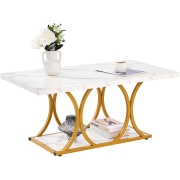 VEVOR Salontafel/Bijzettafel in marmerlook, Rechthoekige bijzettafel met twee niveaus, metalen frame en geometrische poten, draagvermogen van 95 kg, Minimalistische woonkamertafel wit