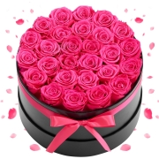 VEVOR 27 Eeuwige Rozen in een Ronde Doos, Geconserveerd Boeket, Bloemengeschenkdoos voor Uw Vrouw, Moeders, Geliefden, voor Bruiloften, Moederdag, Valentijnsdag, Kerstmis, Rozenrood