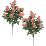 Kunstbloemen boeket rozen/gipskruid - 2x stuks - zalmroze - H56 cm - Bloemstuk - Bladgroen -