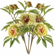 Kunstbloem pioenroos Spring Dream - 5x - groen/roze - 73 cm - kunststof steel - decoratie -