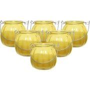 Citronella kaars voor buiten - 6x - glas - geel - 15 branduren - D8 x H8 cm - citrus geur -