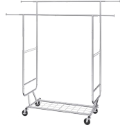 VEVOR Kledingrek op wielen met 2 kledingstangen, verstelbaar 1282-1914 mm / 1443-1867 mm (L/H), vrijstaand stalen kledingrek, draagvermogen 59 + 136 kg, extra sterk zilver
