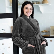 Superzachte, pluizige fleece badjas met sjaalkraag van koraalvlies, die bij elk gebruik een hoog comfort biedt. Perfect om te buigen, te ontspannen en te dragen na een inspannende werkdag.De…