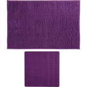 Badkamer droogloopmat/tapijtje met kiezel motief, laagpolig van microfibre met zelfde kleur zeeppompje. Kleur: lila paars. Voor bij de wasbak of naast het bad, comfortabeler bij het uitstappen.…