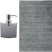 Badkamer droogloopmat/tapijtje met kortharige noppen van polyester/katoen met bijpassende kleur zeeppompje. Serie: Sienna. Kleur: lichtgrijs. Voor de wasbak of het bad, comfortabeler bij het…