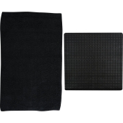Douche anti-slip mat en grote droogloopmat van kortharig polyester/katoen set voor in de badkamer. Serie: Napoli. Set van 2x stuks in 2 formaten. Kleur: zwart. Voor in de douche en voor de wasbak…