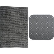 Douche anti-slip mat en droogloopmat van microvezel met noppen set voor in de badkamer. Serie: Sevilla. Set van 2x stuks in 2 formaten. Kleur: donkergrijs. Voor in de douche en voor de wasbak of…
