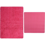 Douche anti-slip mat en grote droogloopmat van langharig microvezel set voor in de badkamer. Serie: Venice. Set van 2x stuks in 2 formaten. Kleur: fuchsia roze. Voor in de douche en voor de wasbak…