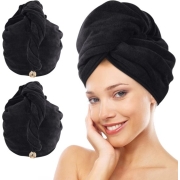 Tulbanddoek met knoop XL microvezel haartulband voor haar sneldrogende haardoek superabsorberend en zacht voor lang en dik haar 30 cm x 70 cm 2 stuks zwart