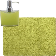 Badkamer droogloopmatje/tapijtje met lang haar van microfibre met bijpassende kleur mooi zeeppompje. Serie: Aveiro. Kleur: limegroen. Voor de wasbak of het bad, comfortabeler bij het uitstappen.…