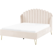 Beliani-BAJONNA-Bed met opbergruimte-Beige-160 x 200 cm-Fluweel
