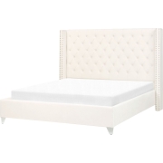 Beliani-LUBBON -Tweepersoonsbed-Gebroken wit-160 x 200 cm-Fluweel