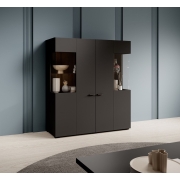 Dressoir Navil is een moderne designkast, uitgevoerd in een mat zwarte kleur. De kast beschikt over drie openslaande deuren met daarachter 6 opbergvakken. De deuren openen door middel van…