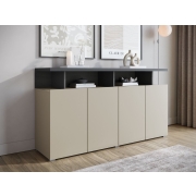 Dressoir Zakari is een moderne designkast, uitgevoerd in een beige kleur. De kast beschikt over 3 lades en 2 deuren met daarachter 4 opbergvakken. De deuren en lades openen door middel van…