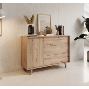 Dressoir Fuzeta is een opbergkast in moderne, warme stijl. Het dressoir staat op hoge pootjes.De kast heeft 3 lades en 1 deur. Deze zijn greeploos en beschikken over het push to open systeem…