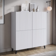 Dressoir Palamos is een opbergkast in moderne stijl. De kast heeft 4 deuren met daarachter 8 opbergvakken. De deuren zijn greeploos. De voorkant van het dressoir heeft een latten patroon. De kast…