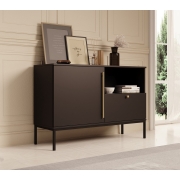 Dressoir Lagos is een opbergkast in moderne, hotel chique stijl. De kast beschikt over 1 deur, 1 open vak en 1 lade. De deur opent met een grote handgreep, de lade met een knop. Deze zijn beide…