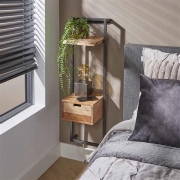 Dit trendy nachtkastje 'lean' is uitgevoerd in acacia hout en gepoedercoat metaal. Het nachtkastje dient tegen de muur te staan en heeft 2 schroefgaatjes voor extra stevigheid. Dit nachtkastje is…