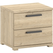 Nachtkastje Sammie 50x39x47cm uit spaanplaat met afwerking in eikdecor. Met twee lades met zwarte metalen handgrepen. Specificaties • Kleur: Bruin • Lengte: 50 cm…