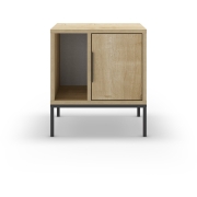 CaliCosy Nachtkastje met één deurtje op wieltjes, eikenkleur gemaakt in frankrijk