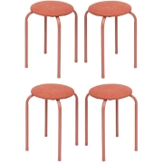 5Five Stapelbaar zit krukje Fierra - 4x - metaal/polyester - roze - D38 x H46 cm - stoelen -