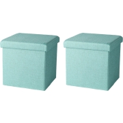 Poef/hocker - 2x - opbergbox zit krukje - mintgroen - polyester/mdf - 38 x 38 cm - opvouwbaar -
