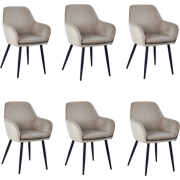 Colenis® - Levan eetkamerstoel - Set Van 6 - Beige - Velvet - Industrieel - Met armleuning