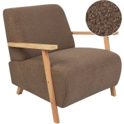 Zetel met armleuningen. Geniet van deze fauteuil met comfortabele, beklede zitting in een zachte, duurzame boucléstof in bruin en armleuningen en poten van eucalyptushout voor een warme en gezellige…
